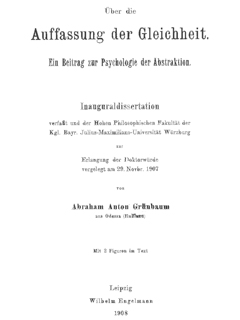 Über die Auffassung der Gleichheit ein Beitrag zur Psychologie der Abstraktion
