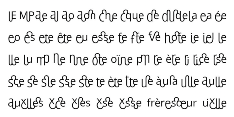 28Un coup d’œil sur les écritures du monde permet en outre de constater que certains répertoires sont très ouverts, comme celui de l’écriture hiéroglyphique égyptienne (Collombert 2022), et d’autres plus fermés, comme celui de l’alphabet français. Autrement dit, on observe que les normes concernant le nombre d’unités graphémiques admises jouent de manière moins impérieuse dans le premier type de cas que dans le second. On ne s’étonnera donc pas que les ensembles de produits légitimes ne soient pas stricts, mais flous. Évidemment, il ne s’agit pas là d’une opposition polaire : comme on le verra plus loin (§ 4.3), les normes sont labiles et fluctuantes, de sorte que les contours des répertoires peuvent toujours varier. Ainsi, le répertoire des unités graphémiques simples de l’écriture française contemporaine pourrait sembler bien stable. Mais cela n’a pas empêché différents designers-typographes de proposer de nouvelles polices de caractères inclusives3 intégrant des graphèmes qui autorisent une double lection (fig. 2) :